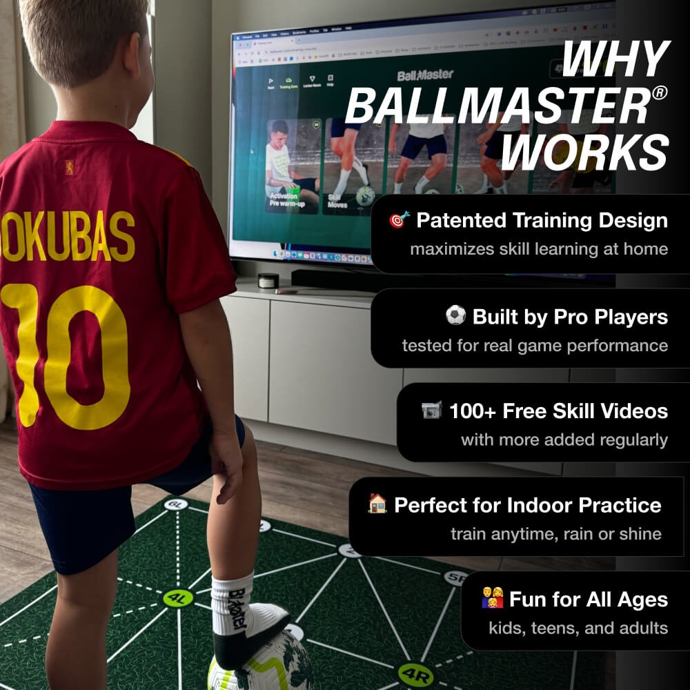 Die Ballmaster® Fußball-Trainingsmatte ist für alle Alters- und Leistungsstufen geeignet und ist mehr als nur eine Ausrüstung - sie ist Ihr Tor zu einer weltweiten Fußball-Trainingsgemeinschaft. Bestellen Sie noch heute und beginnen Sie zu trainieren wie ein Profi.